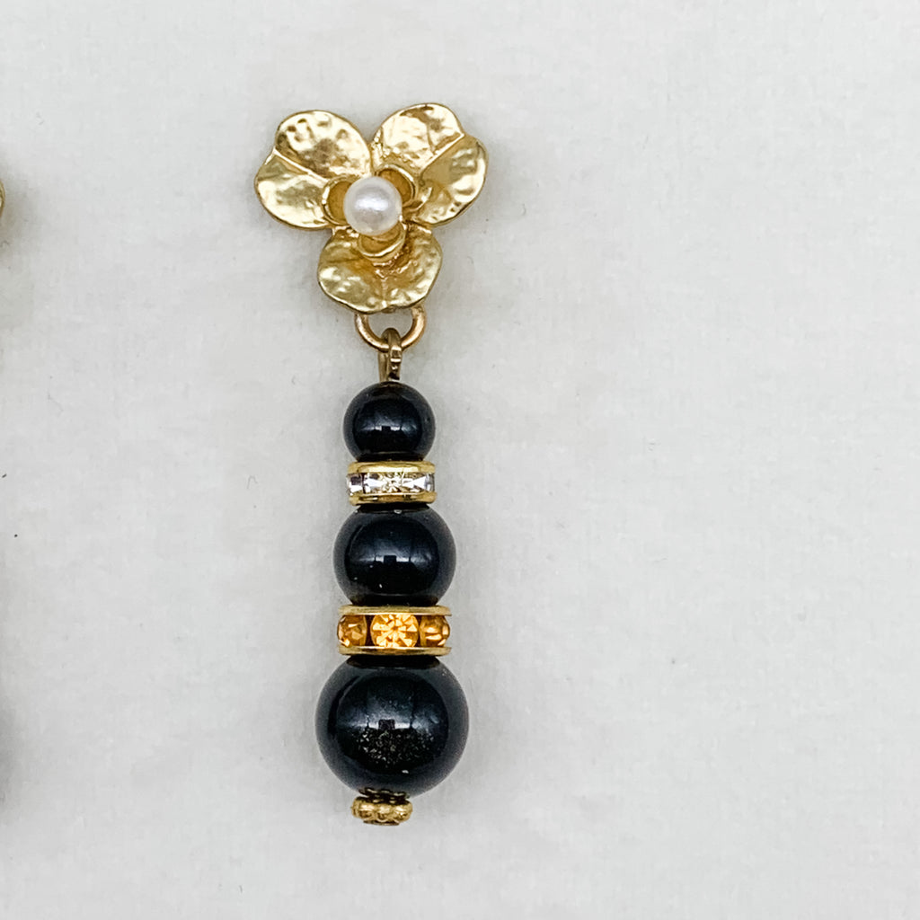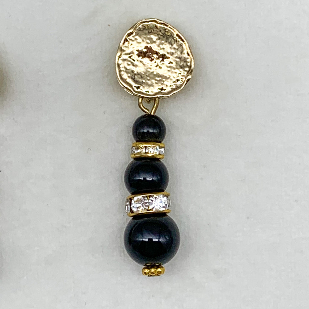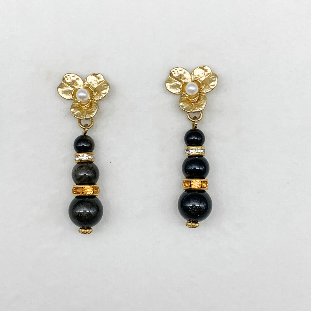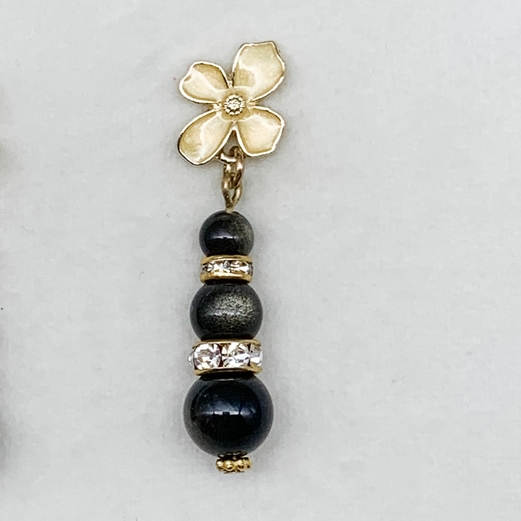 SKU E-0412Basic and always elegant. 3 beads of Golden Black Obsidian with gold accents and studs and some sparkle.